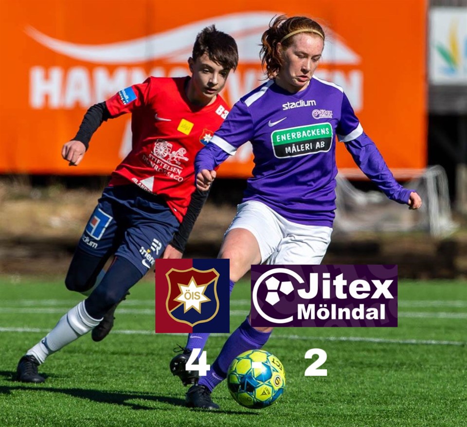 Dags att mäta sig med killar och laget begav sig till ÖIS-gården och Hammarviken area. ÖIS P15 stod för motståndet och vi förväntade att det skulle bli åka av. Kanske var det lite för mycket respekt inledningsvis. "Vi ligger lite för långt ifrån och verkar ha lite för mycket respekt för killarna första 10-15 minuterna" säger Kajsa efter matchen. ÖIS tar ledningen 1-0 redan i den sjunde minuten efter att tjejerna stoppat ett ÖIS-anfall men när vi skall spela upp bollen i anfall bryter ÖIS och spelar ut på högerkanten. Från högerytter-position får det till ett inlägg som vi nickar bort men ÖIS vinner andra bollen och kan peta in bollen från målområdeslinjen. Sedan börjar tjejerna tar för sig mera jämnar ut spelet. Kajsa kommenterar: "När vi går in i närkamperna så går det mycket bättre, ligger vi bara nära och går in direkt så spelar det inte så mycket roll att killarna är fysiskt starkare." Men i den 24e min bryter ÖIS ett Jitex-anfall på mittplanen, kommer upp på ena kanten men där stänger vi till. Bollen spelas bakåt av ÖIS men därifrån hittar de ett långt instick diagonalt i straffområdet där en kantspringare dyker upp och kan skarva in 2-0. Så i den 31 min så landar ett ÖIS anfall hos Anna L i mål som spelar ut bollen. Ella R tar emot på Jitex planhalva, håller undan från sin bevakning och kan vända upp och komma ifrån och få lite yta och tid. Där hittar hon Stinalisa centralt i djupet mitt framför mål. Stinalisa rundar hemmamålvakten men kommer ur vinkel och spelar snett innåt till Nora som kommer rusande och kan peta in reduceringen, 2-1. Efter pausvilan kommer tjejerna ut med mer självförtroende, ÖIS har några chanser som Anna för göra några bra räddningar på men tjejerna är också framme i flera anfall. I 52a minuten drar Ella R upp ett anfall till höger, blir fälld och får frispark som Ella SY tar hand om. Frisparken slås mot första stolpen där Stinalisa dyker upp och skarvar in kvitteringen 2-2. Tyvärr blir det inte så långvarigt, hemmalaget bryter ett uppspel och kan springa igenom och åter ta ledningen 3-2 i 55e minuten. Spelet i halvleken är fortsatt jämt och i slutet försöker vi flytta fram spelet för en kvittering men det straffar sig i 87e min. En lång utspark från hemmamålvakten studsar på en Jitex-spelare åt fel håll och en ÖIS-spelare kan springa igenom. Anna är på skottet från nära håll och räddar så när men bollen studsar sakta över mållinjen till 4-2 som blir slutresultatet. Men en bra insats av tjejerna efter de inledande 10-15 min av matchen, då står vi upp bra i närkamperna, klarar att spela bollen och gå till anfall trots att det gå snabbare och vi har mindre tid med bollen. "Helhetsintrycket är att vi gör en bra match" säger Kajsa och fortsätter "sedan är vi lite trötta i slutet när vi skall flytta fram för en kvittering. Det högre tempot börjar kännas då. Men jag är väldigt nöjd med insatsen från hela laget och extra plus till Ella R som jag tycker tar för sig ordentligt på mittfältet". Trots att seriestarten kommer att dröja under rådande omständigheter fortsätter tjejerna träna och nästa lördag väntar match mot GDFF på Åbyvallen om allt går som planerat.