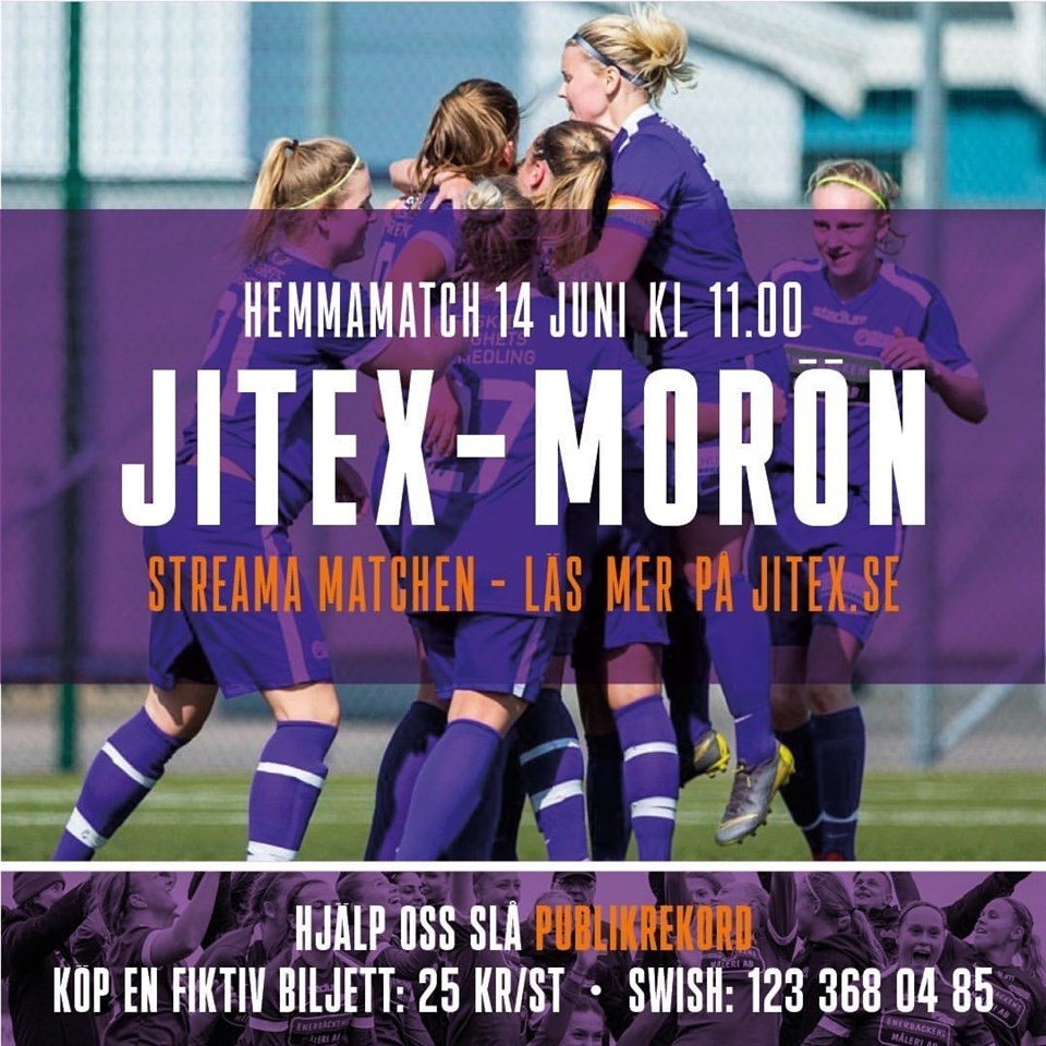 Nu är det äntligen dags JITEX, det är verkligen KICK OFF! Vi ser fram emot en spännande säsong och söndagen den 14 juni kl. 11.00 möter vi Morön hemma på Åbyvallen. Med anledning av Covid19 spelar vi tyvärr utan publik, men stödet från läktaren behövs mer än någonsin. Stötta Jitex genom att köpa fiktiva ”biljetter” – swisha 25 kr/biljett till 1233680485 och märk betalningen med #allinförjitex. Matchen kommer att streamas och länk till sändningen hittar du på jitex.se/streaming Nu kör vi! #viärjitex #lilafamiljen #Elitettan