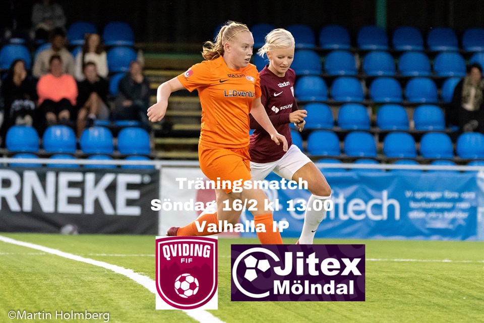 Då är det dags för träningsmatch nummer tre och motståndare är Qviding FIF. Matchen spelas på Valhalla IP på söndag kl 13.00. Nyförvärvet Amanda från just Qviding är dock inte spelklar och inte med i söndagens match. Emma T är tillbaka efter skadekänning och gör sin första match för säsongen, dock rapporterar ledarstaben att man tar det försiktigt och låter Emma spela en halvlek. Truppen för söndagen ser ut så här: Anna L, Hannah, Emma, Emelie, Felicia S, Matilda, Anna F, Ella SY, Ella R, Tindra, Fanny, Linnea, Nora, Stinalisa, Mona, Ida samt ev ytterligare en spelare. Resten av truppen dra för tillfället med tillfälliga sjukdomar eller småskador och står över matchen. Fokus denna matchen är att fortsätta från förra träningsmatchen med högt bolltempo och ”göra jobbet” matchen igenom. Dessutom extra fokus på anfallsspelet. Vi hoppas lite Jitex-supportrar tar sig till Valhalla imorgon och hejar på våra tjejer! Kör hårt och lycka till, tjejer!