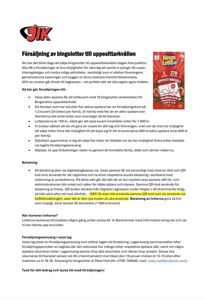 Klicka på bekräftelselänken i det mejl vi skickat dig för att börja ta emot uppdateringar från Jönköpings IK P16.