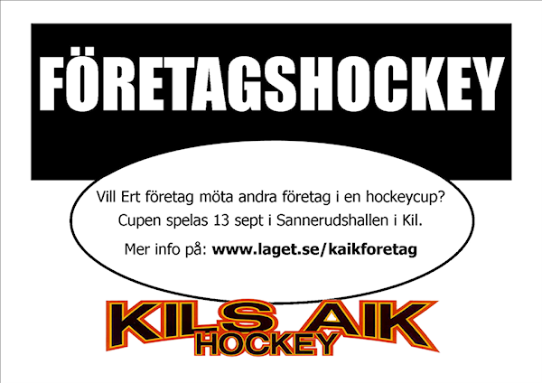 Som en följd på en förfrågan kommer Kils AIK att anordna en företagscup i ishockey lördagen den 13 september i Sannerudshallen i Kil. Lag som kan anmäla sig är företag eller arbetsplatser samt kompisgäng. Följande gäller: