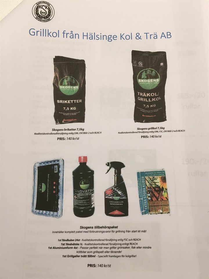 Bra produkter att köpa - stöd KSKs verksamhet! Vår förening är alltid i behov att samtliga medlemmar hjälps åt att få in pengar till hallhyror, bollar mm. Bollek har inga krav bortsett från medlemsavgiften. OM ni har möjlighet att delta i föreningens försäljning av riktigt bra produkter är vi ytterst tacksamma. Det finns följande till försäljning: • Grillkol/briketter 140kr • Toapapper 190kr alt 205kr - se bifogad bild • Hushållspapper 175kr alt 185kr - se bifogad bild • Newbody 150kr/paket - se broschyr • Gogrillaprodukter - se broschyr Två möjliga alternativ finns att hjälpa oss: * Ta egna beställningar från släkt och vänner och bidra maximalt till föreningen. Kataloger och beställningsformulär fås på fredagsträningen. Det finns färdigt material med ditt barns namn, säg bara till. * Beställ för egen del från lagets gemensamma beställningslista, finns på plats på fredagsträningen. Kataloger och övrigt material finns på fredag! Stort tack på förhand 🙏💚⚽ Med vänlig hälsning, Sofia Ordförande Karlskoga sportklubb