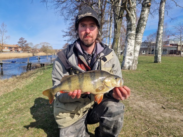 Vi gratulerar från klubben och låter Daniel berätta själv. "Vaknade vid 9-tiden, en aning sliten efter 2 dagars stenhårt fiske utan framgång. Kollade vädret, och bestämde mig för en snabb utryckning till kungsbackaån. Kaffe kokades, ett gäng överblivna mackor från gårdagen åkte i ryggsäcken tillsammans med ett par jigglådor, spö å rulle grabbades och jag satt snart i bilen. Klockan 11.30 ungefär gjorde jag första kastet från favoritbryggan med ett dropshot-tackel och en illex-jigg som funkat bra i ån tidigare. 5 sekunder ungefär tar det så krokar jag en abborre. Hjälp anländer från en brygga uppströms, och håvning går smärtfritt. 1630 gram säger vågen, äntligen satt den! Har fiskat mycket abborre i perioder, och har ganska många mellan 1500 och 1550 gram, men där har det varit stopp tills nu. Jag fiskar fram till kl 17, utan någon mer känning. Ser ingen annan få fisk heller, så dagen var rätt trög. .Men ibland räcker ett napp!" Skitfiske och stort grattis