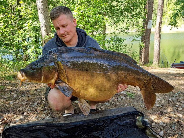 Under helgen har Andreas Vikström fiskat dammen, första natten blev stilla men vid ca kl 19 andra kvällen kommer första runet. Det var gräskarpen som plockat upp den singel popup Andreas lagt om för fiske andra natten, vikten dennna gång blev 8,8 kg. Även andra natten var lugn men sen morgon/ tidig förmiddag runt kl 09.30 drog det iväg igen, fight blev relativt odramatisk och fisken gled in i håven. Han kunde äntligen beskåda Tjockisen som han väntat på att fånga efter att han fått håva fisken två gånger tidigare men då till kompisar som varit med och fiskat. Tjockisen vägdes in på nytt dammrekord 19,46 kg, nästa helg kör han vidare då med siktet inställt på Lilla-Linern Skitfiske och grattis Andreas