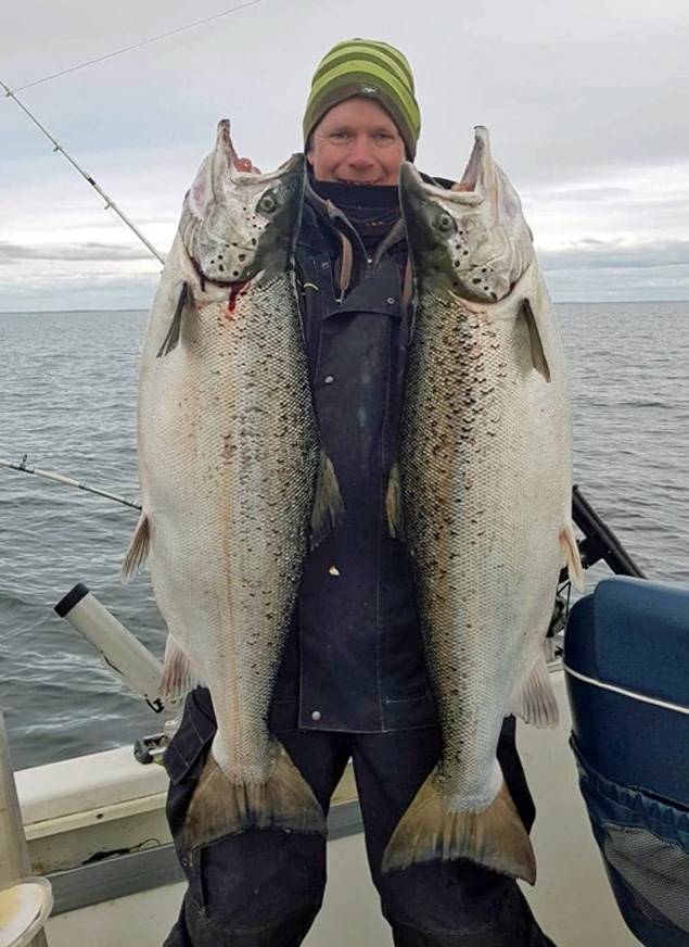 Under gårdagen parade Johan Jansson ihop sig med Anders Bladh för att trolla lax på Vänern och vilket fiske det blev!!!!! Johan lyckades med den extremt svåra bedriften att inte bara landa en 10 kg´s lax utan två, fiskarna vägdes in på 10,1 kg 95 cm och 10,2 kg 96 cm. Individuella bilder på fiskarna finns i fotoalbumet Stort stort grattis till ett livs fiske!