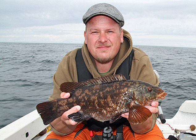 Under lördagen såg prognosen lovande ut för lite spännande gyltafiske, vindarna var beskedliga i starten på dagen. När vi väl letat oss på plats för fisket var det en del gammalsjö som låg och rullade men räkorna åkte på och ner i djupet gled tacklen. Som vanligt nappar det nästan omgående, snultror och mindre gyltor är där och nafsar för att sen bli bortfösta av nog större fisk som slukar betet och en hård gylta fight tar vid! Gyltorna nappade frisk direkt från strart med blandad storlek från de minsta till de hårt fightade berggyltorna över kilot, redan efter ett par timmar klipper jag (skribent) på en riktig tung gylta som inte ger sig i första taget utan dess strävan ner mot botten är påtaglig för att senare koma stångade tungt mot ytan. När fiisken bryter ytan ser jag att den är riktig fin och fet, fisken vägs till 1,47 kg fördelat på 43,5 cm med en omkrets på hela 35 cm. Resultatet av denna fångst blir ett nytt PB och dagen är mer än lyckad. Platsen levererade ytterligare fina fiskar över kilot innan vi bestämde oss för att flytta på och för ett tag för att pröva en annan plats som brukar kunna leverera. Näst intill dirket när vi ankrat klipper Daniel Svalsjö på en bra fisk som stångar och stretar på bra, fiske glider i håven och en lång och mycket omständig vägning tar vid när vi i båten konstaterar att den ligger på gränsen till storfiskregget. Efter att Daniel blivt iland satt på en liten platå kunde vi konstatera att den landar på 1,4 kg prick! gyltan klarar gränsen och en ny art är registrad lika så ett nytt personbästa för Daniel. Vinden som skulle vara så stabil under dagen ökade kraftigt efter lunch vilket försvårade fiske ordentligt men vi bestämde oss för att leta lä för en grillning och lite varm mat i magen innan vi skulle testa första stoppet igen, mätta och belåtna var det bara att ge sig ut i blåsten igen fölr att testa lyckan. Gyltorna nappade fortfarnde även om inte lika intensivt som vid första stoppet, Daniel får ännu en riktigt fin gylta som snabbt vägdes till 1,42 kg (ännu ett nytt PB) innan vi avbröt fisket pga av tilltagande vindar och regn Men sumerat en riktigt bra dag på sjön!!! Skitfiske!