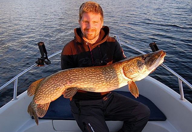 Under föregående helg gjorde Stefan Eriksson en kvällssatsning efter sensommar gäddan på Vänern, fisket kan som så ofta vara lite trögt när tempen fortfarande är relativt hög i vattnet. Så var även fallet denna dag, totalt fick han 3 gäddor men glädjande landade han en fin trots allt. Gäddan vägdes till 9,6 kg fördelat på 117 cm. Stort grattis och hoppas det kommer fler stora under hösten