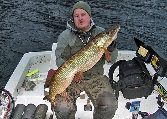 Under söndagen trotsade jag (undertecknande) de kraftiga vindarna och var ute i det extremt varma december för lite gäddfiske. Metoden var slowtrolling med mört och trots de svåra förhållanderna med ruggigt kraftiga byvindar nappade gäddorna bra. Totalt blev det 9 gäddor under dagen som avslutades med den största precis innan ljuset skulle försvinna, fighten var bra och in i håven gled en kraftig dam på 110 cm. Efter lite meck kunde fisken vägas till fin fina 11,1kg En härlig avslutning på gäddfisket eller kanske kommer det mer chanser innan året är slut!!?? Skitfiske Jon Bergström