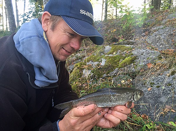 Dag två startade med strålande solsken och vindstilla och riktiga sensommar temperaturer, det nabbade som vanligt i Dalälven. Riktigt mycket fisk av alla möjliga arter. Redan efter några timmars fiske gick Johan över till flötmete och nästan omgående fångade han den första stämmen och någon minut efter det kom regget!, fisken vägdes till 250gr fördelat på 29,5cm Detta var Johans 15:e art och kommer satsa hårt under hösten för att närma sig de tjugo Ytterligare en vimma på 1 kg jämt fick han med sig under dagen och jag fick nöja mig med en fin björkna på 910gr Stort grattis Johan till den svårtagna stämmen! Skitfiske Jon Bergström