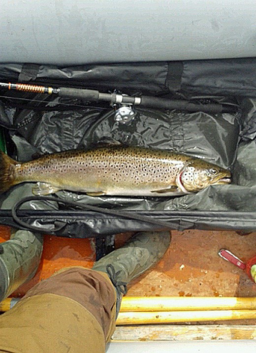 Daniel rapporterar in en fin öring från den sista fiskedagen i Norrland för denna gången, reg.fisken var nära men vikten stannade strax under på 5,7kg. Han berättade att den bjud på en rikigt grym fight! Skitfiske Jon Bergström