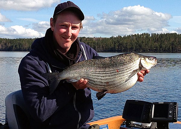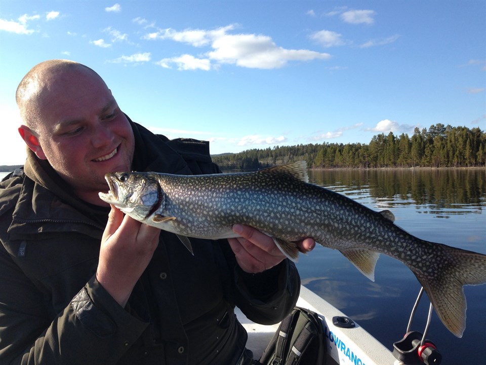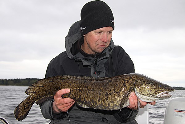 Efter förra helgens lakfiske bestämde jag (undertecknande) och Johan Jansson för att möta upp för att pröva laken under kvällen när man kom från jobbet. Sagt och gjort stod vi redo på rampen för sjösättning strax före kl 18. Johan och jag har under många år jagat lake tillsamman med sikte på att Johan ska få den efterlängtade över de 4 kg. Denna kvällen var ju naturligtvis inget undantag utan siktet var ju inställt på en stor lake, men vi kunde aldrig drömma om att det skulle landas mer än en!!! Lakarna var försiktiga för dagen då de bara nafsade och sög på betena, Johan hade några fiskar som han drog betet ur munnen på men strax efter klockan 19 sög det på ordentligt och efter en brutal fight för att vara lake kunde jag håva riktigt fin lake. Direkt när fisken låg i håven räckte jag fram näven och gratulerade han till en ny art, fisken vägdes till fin fina 4680gr fördelat på 76cm och 45 cm i omkrets . Johan var överlycklig när han släppte fiske i retur men det han inte viste var att det skulle komma mer! Efter ytterligare en timmes fiske med smånafsande och missade fiskar lyckade Johan än en gång kroka en tung fisk. Väl i håven konstaterade vi att det var ännu en 4+ fisk, vägningen visade 4,56kg. Med facit i han kunde men konstatera att förbannelsen med att inte få några stora lakar var med råge bruten. Fisket blev om möjligt än trögare jag hade mitt första napp för dagen vid halv 10 men missade det och den fick med sig betet med svordomar som följd. Ytterligare en halvtimme gick innan jag lyckades kroka en fisk, fisken kom lätt med upp till 1,5-2 meter från ytan innan den bestämde sig för att vänd tillbaka till sitt rike i en kraftig rusning så jag misstänkte att det var gädda på ingång. Men efter rusningen kom den snällt upp till ytan igen och en kort och trind lake håvades Jag sa till Johans att det är bland det fetaste jag sett, fiske mättes till 72cm och vikten fastställdes till grymma 4,41kg på den längden. Efter det fiskade en kort stund till innan vi bestämde oss får att gå iland, restultat är nog tveksamt om man får uppleva igen med 3 fiskar totalt och en medelvikt på över 4,5kg men man kan ju alltid hoppas Fler bilder finns att beskåda i bildarkivet Skitfiske Jon Bergström