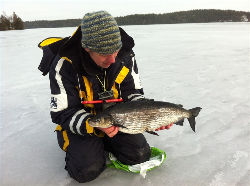 Efter en höst med dåligt väder och en minst sagt frustrerande jakt på betesfisk, fick jag och Kim ihop några mörtar så vi bestämde oss för en fiskedag. Vädret och förutsättningarna var goda men fisket började trögt med endast en bommad kontakt de första 3 timmarna. Sedan började fisket ta sig och det började med en liten snärta för Kim som följdes upp av en sänkt paravan efter att Kim släppt ut lite mer lina för att bredda fisket lite, han skickade mig spöt och jag känner på linan konstaterar att det är fisk och sätter in ett ordentligt mothugg. Fisken svarar med några tunga huvudskakningar för att sedan gå tungt (som en större fisk) in mot båten, väl inne vid båten hinner vi konstaterat att det är en bättre fisk när den sedan bjuder upp med några fina rusningar både framåt förbi elmotorn och så när går den fast i utombordaren för där efter glida in i håven. Väl i håven konstaterar vi en fin välkonditionerad gädda, när vi sedan mäter den visar måttbandet 110 cm och vågen stannar på 11,08 kg. Efter denna fisk fortsätter dagen i sakta mak med ytterligare några fiskar men i mindre storlek. Hoppas man hinner med någon tur till men stämmer 10 dagars prognosen kommer väl isen till helgen Skit fiske Jon Bergström