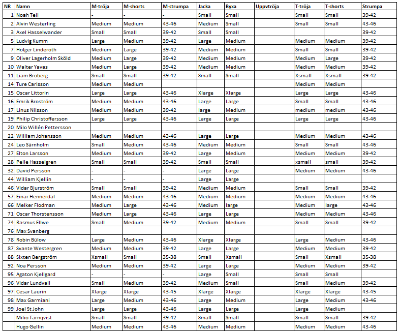 Föräldrar: Kolla igenom storlekarna så det känns rimligt. Vill man dubbelkolla, kom ner till träningen alternativt åk ner till Klubbetamet med era barn och kolla själva!