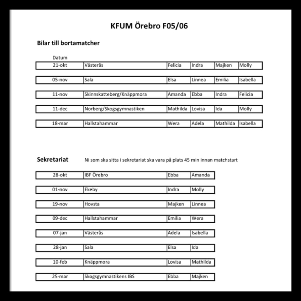 Här kommer schemat för bilar och sekretariatet. Ligger under dokument också. F-05/06 4 okt 2017 0kommentarer