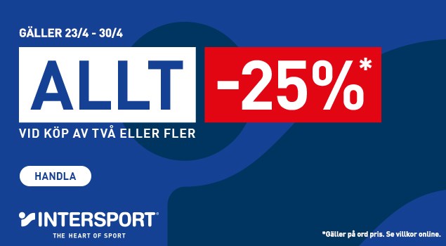 Hej på er! Mellan den 23/4 - 30/4 har vår samarbetspartner Intersport 25% rabatt på allt, för dig som handlar två varor eller fler, i butik eller på interport.se. Ett perfekt läge att köpa det ni behöver för vårens alla aktiva dagar. Genom ett medlemskap i Club Intersport får du tillgång till unika erbjudanden samt bonus på alla dina köp. Välj "KFUM Basket Skellefteå" under ”Mina sidor” på intersport.se, då går 3% på allt du handlar hos oss tillbaka till KFUM utan att din egna bonus påverkas! Läs mer i bifogad länk och återkom om ni har frågor eller funderingar! https://www.intersport.se/