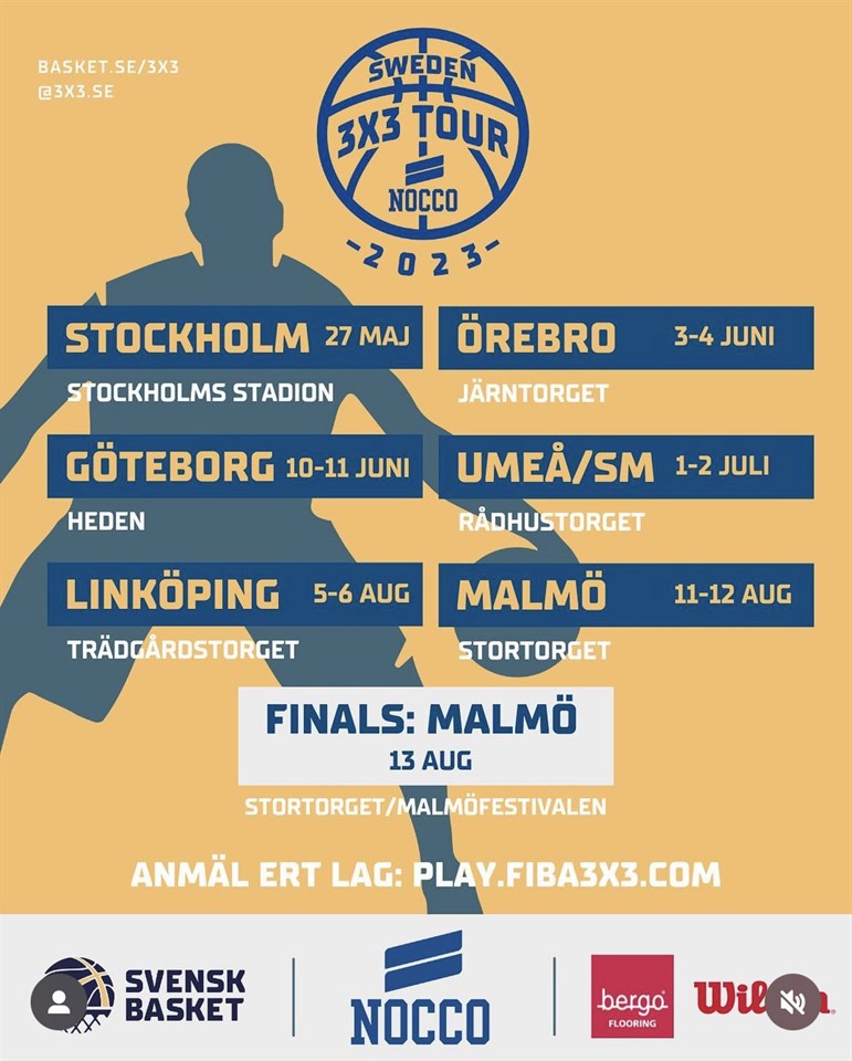 KFUM Örebro arrangerar en 3x3-turnering på Järntorget i Örebro. Man behöver vara minst tre men max fyra i varje lag. Kostnad 400 kr/lag. För information och anmälan följ länken nedan. https://play.fiba3x3.com/events/45a4e957-3671-4cce-a8ee-9e26bcf759aa P08/09/10 11 maj 2023 0kommentarer