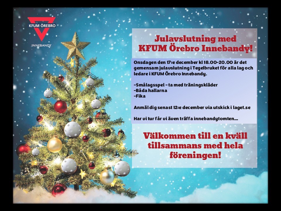 Välkommen på julavslutning för samtliga lag i föreningen onsdagen den 17:e december klockan 18.00-20.00 i Tegelbruket.