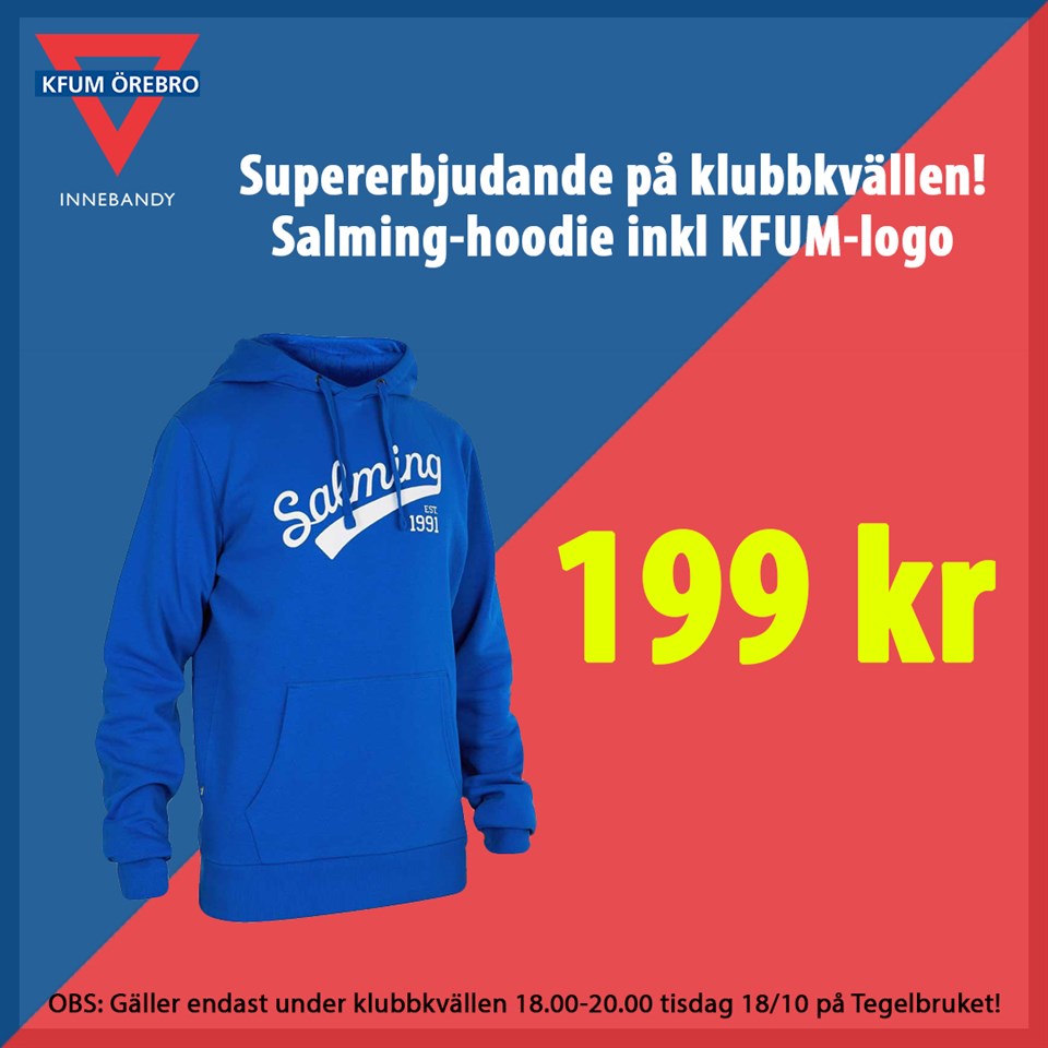 Tillsammans med våra samarbetspartnerts har vi tagit fram ett supererbjudande på en hoodie från Salming till vår klubbkväll. Endast 199kr inkl KFUM-loggan tryckt på. Erbjudandet gäller endast under klubbkvällen! Klubbkvällen sker den tisdag den 18 oktober 18.00-20.00 i Tegelbruket, en trappa upp! KFUM Örebro Innebandy 15 okt 2022 0kommentarer