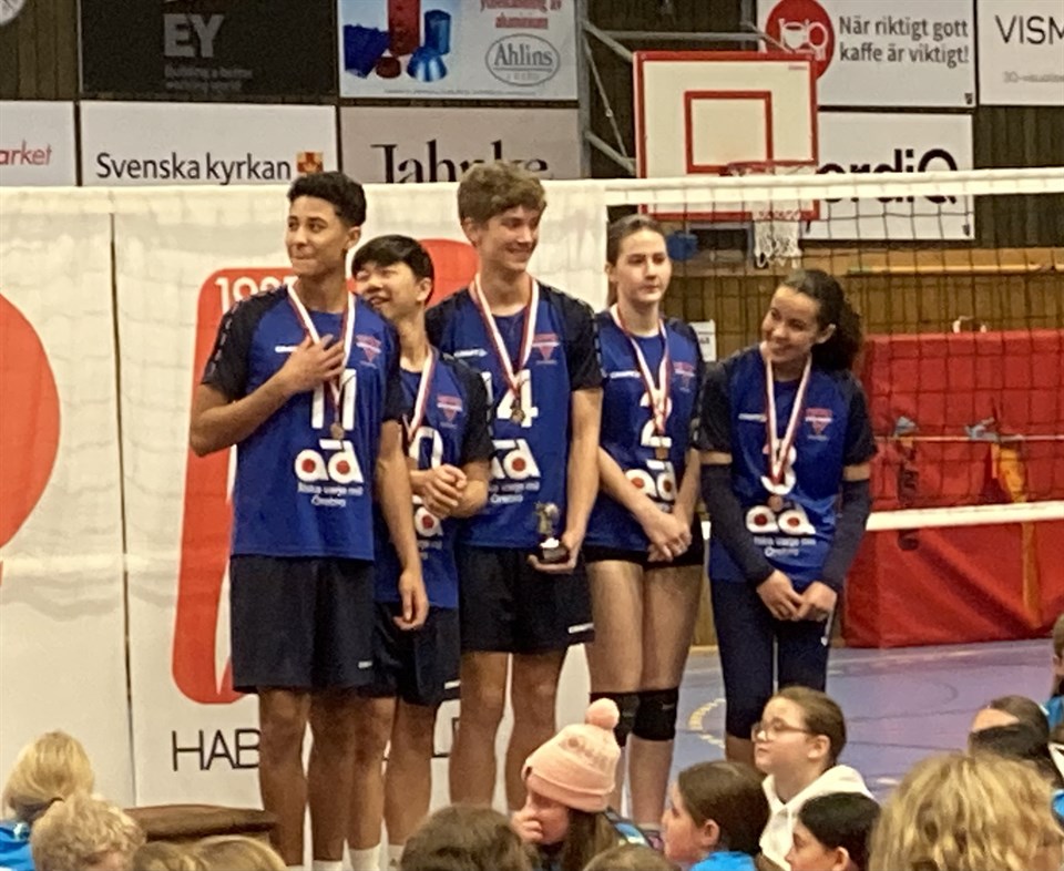 Fyrmanna festivalen i Habo En 3'e plats bärgades av vår 5-klöver som under helgen spelade Level 7 pojkar/mix, näthöjd 235cm (aktiva från 2009 & yngre). För vår träningsgrupp är detta en traditionsenlig turnering och en avtackningsturnering för de killar och tjejer som säsongen före spelade U16 SM svart nivå och som denna säsong 24/24 är överåriga. Tack till våra U16 pensionärer och 2009’or Davey Efraim och Kristina . Genrep för Elsa och Henrik (VVK/) som också var med och spelar under helgen Vi är så stolta över detta gäng. Hur de är mot varandra och andra lag på och utanför plan. De stöttar, peppar och försöker göra varandra bättre. Många snygga poäng blev det! Vi njöt av att se Efraim hoppa igen. Flera finfina anfall och massor av läckra pass Davey som trots rester av en förkylning hade många fina anfall, block och efter självjustering många fina servess. Henrik vårt lags allt i allo Våra drottningar Kristina - drottningen framme vid nätet och Elsa vår drottningen av mottag Näthöjden 235 cm var en liten utmaning i början för tjejerna då det är 11cm högre än damhöjd. Vi saknade flera spelare Cornelis, Edvin S, Valde som deltog i 23/24 U16 lag samt Noel från VVK dessa killar kunde ej vara med denna helg. För då hade vi haft 2 lag på plan. Vingåker (=VVK) har tillsammans med KFUM Örebro skrivit på ett samarbetsavtal på ungdomssidan för killar. Vilket gör att klubbarna kan slå sig samman alt spela för sin egen klubb. Vid sammanslagning på ungdomssidan (U16 och U18) spelas det under KFUM namnet Vid en sammanslagning på juniorsidan (U20) så spelar lager under Vingåkernamnet. Vingåker har idag få killar födda 2008-2010 som har spelat länge vilket gör att de nu får möjlighet att spela SM i sin egen åldersgrupp. U18-U16 4 jan 1kommentar