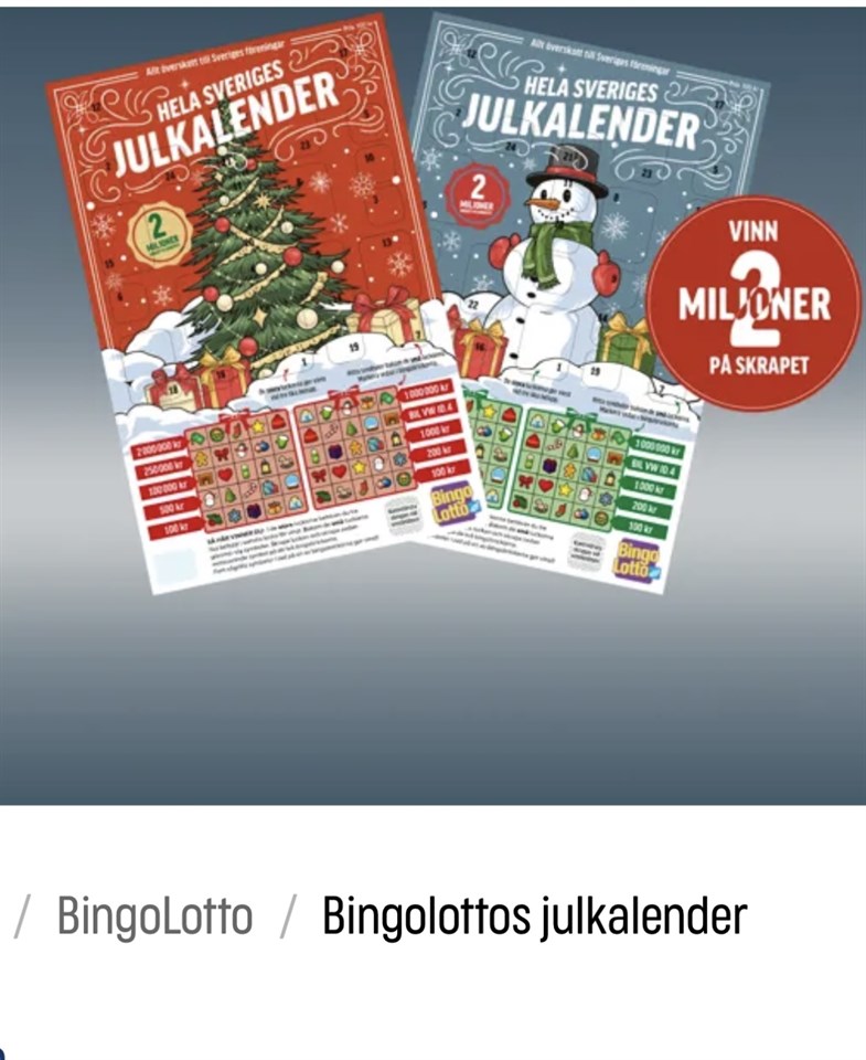 Vi säljer Bingolottokalendrar (en skraplott med en lucka per dag 1-24/12)