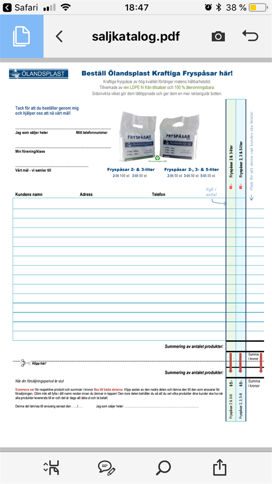 • Försäljning av Ölandsplast-fryspåsar