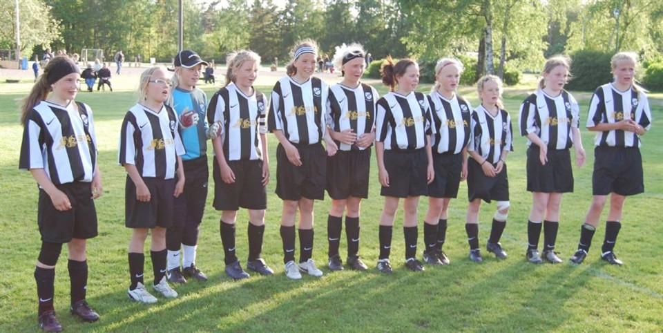 Seriens näst sista match borta på grus. Några vana grusspelare är vi inte....men faktum är att vi blir bättre och bättre även på detta trista underlag. Då vi inte är så många spelare i vårt lag och för dagen fattades vi Robina som är på Mallorca och solar & badar. Vi fick sätta vår anfallare Antonia på en ovan back position. Men det visade sig att hon klarade detta utmärkt. Matchen startade med högt tempo från båda lagen, Husie hade ett lite övertag i början på första halvlek och lyckas göra 1-0 i en situation där vi kommer av oss. Det tog nästan hela första halvlek att komma in i matchen med det grusiga underlaget. Vi skapar chanser och bränner några bollar precis utanför stolpen. Mot slutet i första halvlek började det brännas och ett mål från vår sida hängde i luften....men bollen ville inte som töserna ville. I pausen pratar vi om att hålla lite mer i bollen och försöka ta sig förbi med en fint, vi fortsätter anfalla med ett antal målchanser. Husie bränner oxå några bollar utanför stolpen samt Nellie gör kalas räddningar. Hanna skadar sig och får gå av plan....Felicia går ner och tar hennes plats som back......nu är det inte mycket kvar av matchen...töserna börjar bli trötta men fortsätter att kämpa. Vi får en hörna som Felicia lägger.......och där är Louise och petar in bollen i MÅL.......det var Louise premiärmål och det kom väldigt lägligt idag:):) Nu krigar både lagen på....vi får två heta målchanser innan slutsignal....men vi får inte till det i slutskedet. Det var en bra match från båda lagen.....men Köpingetöserna hade mest bollinnehav i matchen. Bra kämpat alle sammans........det lönar sig att aldrig ge upp:):) Målskytt: 1-0 1-1 Louise (assist Felicia) F-97/98 6 jun 2009 0kommentarer
