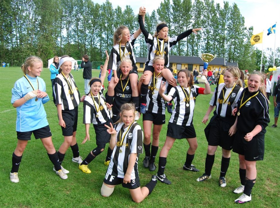 Grattis till seger i Månstorpscupen. Ni gjorde det onödigt spännande i finalen, vet inte hur många gånger ni avlossade det ena skottet efter det andra. Ni var själva frustrerade över att ni sköt över...det var vi med kan vi berätta. Mina solglasögon åkte upp och ner, trodde kanske det berodde på att de inte satt som de skulle. Efter fulltid stod det 0-0. Förlängning 5 minuter och första målet vinner cupen. Vi fortsätter avlossa skotten.....och de gick över. När det återstår kanske en minut så hade ni fått nog och man såg på er att nu skall den sitta och äntligen fick Titti utdelning efter alla sina skott och gör MÅL. Bra spelat allesammans:) Ännu en jätte pokal, vi vet inte hur vi ska få plats med den i vårt egna stora fullproppade skåp.