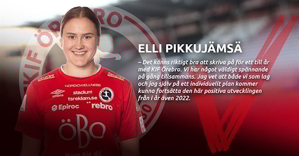 – Det känns riktigt bra att skriva på för ett till år med KIF Örebro, det är en klubb jag trivs riktigt bra i. Vi har något väldigt spännande på gång tillsammans, där vi nu är flera spelare från i år som stannar även nästa år. Jag vet att både vi som lag, och jag själv på ett individuellt plan, kommer kunna fortsätta den här positiva utvecklingen även 2022, säger Elli Pikkujämsä, försvarare i KIF Örebro.