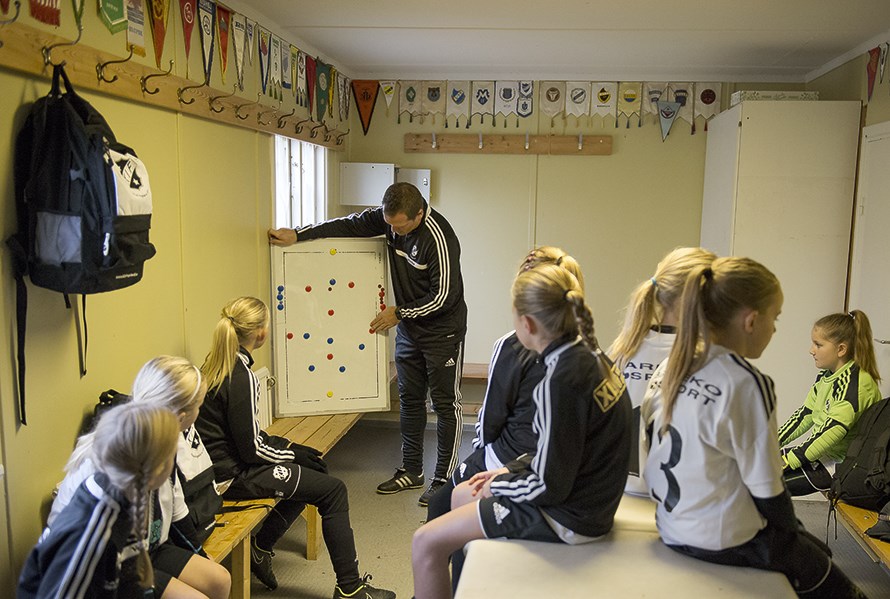 I halvlek pratade Mattias om att fortsätta spela bollen och att tjejerna gjort en bra match hittills.