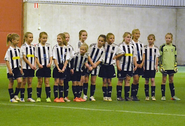 Innan finalen presenterades de båda lagen på mittplan och man såg hur stolta tjejerna var. När matchen drog igång mot Höllviken så satte man hög press direkt och under de första sju, åtta minuterna var spelet förlagt till Höllvikens planhalva. Tyvärr dök inte de riktiga målchanserna upp.