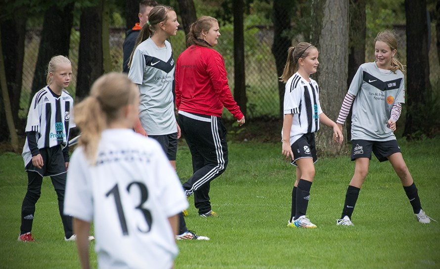 Andra matchen i F11-serien startade i duggregn där dagens motståndare var Lövestad. Redan från början tog tjejerna tag i matchen och spelade bollen mellan sig. Målchanserna duggade tätt och efter fyra, fem minuter hittade Tilda, Jossan som i sin tur hittade Mira som slog in 1-0. En stund senare var det dags igen då Vera passade till Tindra som i sin tur hittade Mira. 2-0 och en kanonstart på matchen. Precis innan halvlek hittade Märta, Vera, som slog in 3-0. I halvtidspausen pratade Mattias om att yttermittfältarna skulle försöka gå mot första stolpen och sedan slå en passning snett inåt bakåt mot straffpunkten istället för att avsluta själva varje gång. Förutom det så berömde han tjejerna för det fina spelet som de visat upp under hela första halvlek. I andra halvlekens början blev det en tilltrasslad situation som gav Lövestad en frilägeschans och 1-3 var ett faktum. Pressen och spelet behöll dock tjejerna under hela halvleken och några minuter innan slutet av matchen kunde Wilma hitta Tindra som slog in slutresultatet. 4-1 till Köpingebro. Sammanfattningsvis så var spelet otroligt bra och antalet målchanser var hur många som helst. Med lite tur kunde tjejerna i alla fall fått in en fem, sex bollar till medan Lövestad i stort sett bara hade den chansen som gav dem deras mål. Samtidigt spelar det ingen större roll eftersom spelet, passningsspelet, pressen och kämpainsatsen var kanonbra från alla tjejer. Klara som gjorde sin första match som målvakt var mycket bra och backarna otroligt bra och med i spelet. Mittfältarna hade fart under skorna, pressande högt upp och anfallarna skapade hela tiden chanser och rörelse. En grymt bra laginsats helt enkelt. Bilder från matchen, tryck här