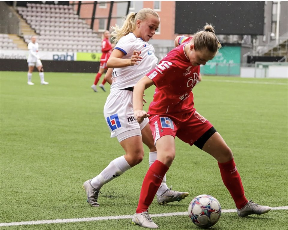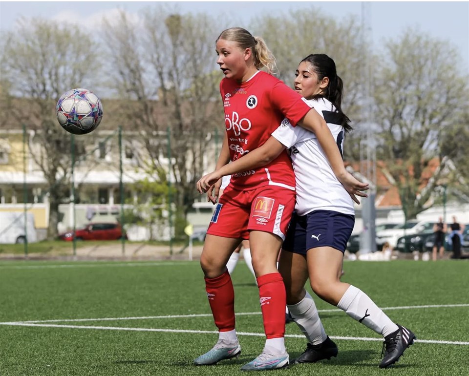 På måndag åker KIF Örebro till Lidköping för spel i omgång 5 av Svenska Spel F-19 Södra. Hemsidan tog en liten pratstund med mittfältaren Saga Nordin inför mötet mot Lidköping, hur känslan i truppen är och hur hon ser på skillnaden mellan F-17 och F-19. Tjena Saga, hur är läget? - Tjena, det är bara bra med mig. Du tog klivet upp i F-19 inför den här säsongen. Hur har den omställningen varit? - Jag skulle nog säga att den största omställningen är tempot. Eftersom det är högre nivå blir det såklart högre tempo och tuffare utmaningar. Självklart är det också en omställning att spela med nya spelare men det tycker jag har gått väldigt bra. Ni har tagit 4 poäng på de tre inledande matcherna, är det rättvist? - Jag tycker verkligen att vi har förtjänat de poängen vi har fått hittills men jag hade nog tyckt att vi förtjänade i allafall 1 poäng mot Rosengård i förra omgången. Vi gjorde en sån bra match och var starka från början till slutet. Hur är läget i truppen? - Stämningen i truppen känns jättebra. Vi har bra sammanhållning vilket är väldigt viktigt för att vi ska kunna utvecklas och hålla ihop. Vi alla verkar vara på tårna och är sugna på att ta poäng samt en revansch från förra helgen. Nästa match i F-19 är borta mot Lidköping, vad behövs för att ni ska åka hem med 3 poäng därifrån? - Jag tror det viktigaste är att vi har bra mindset både innan och under matchen och att vi verkligen spelar vårt spel. Om vi är lika starka och peppade som vi har varit hittills på säsongen så kommer det gynna oss väldigt mycket på måndag mot Lidköping. Vi tackar Saga för pratstunden och håller våra tummar för att tjejerna kommer hem med 3 poäng från Lidköping! Foto: Rasmus Ohlsson