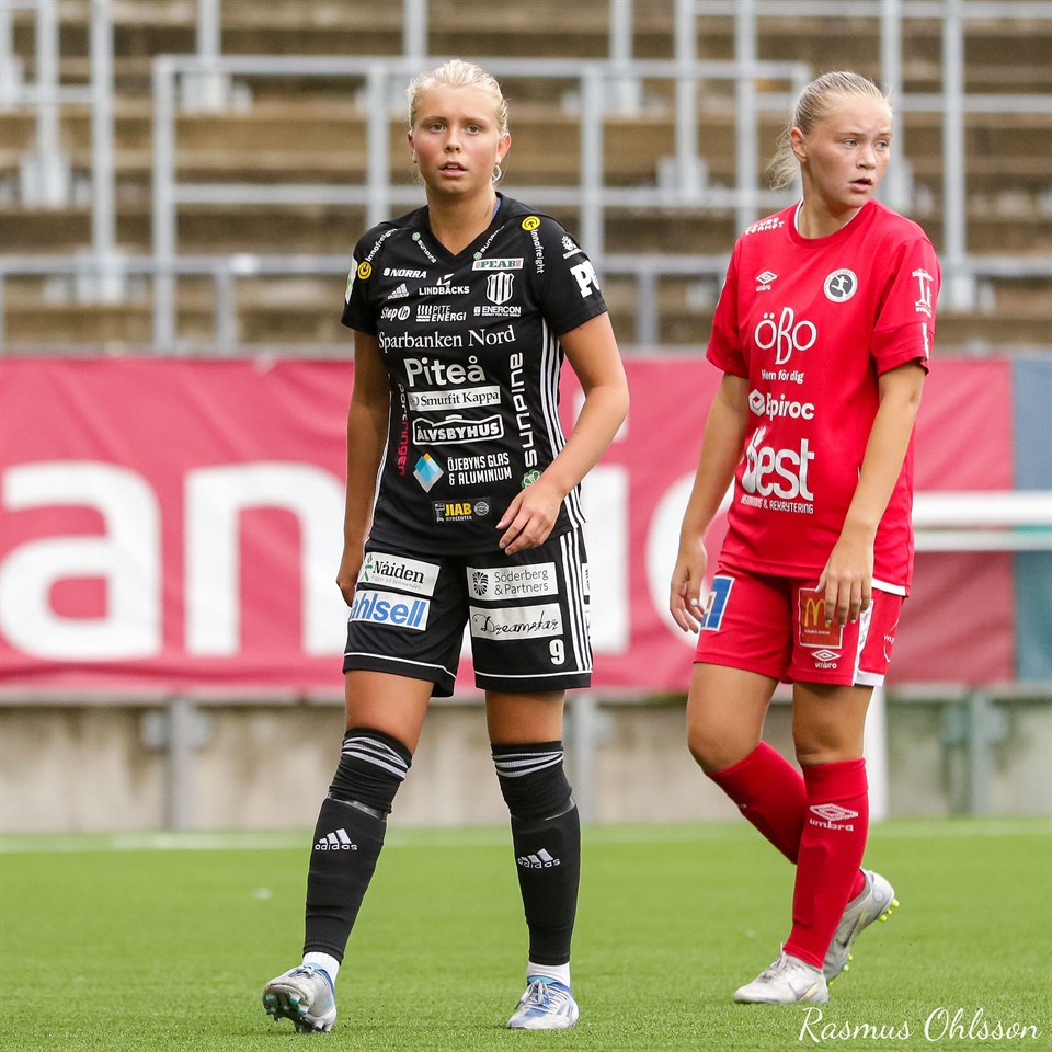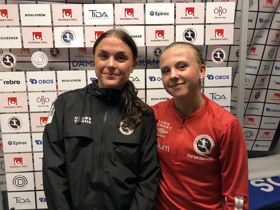 KIF Örebro jobbar för att utveckla unga talanger och få dem så förberedda som möjligt för framtiden. Ett steg i den utvecklingen är att flytta upp spelare från de yngre leden till de äldre leden. Ett steg man kan ta är klivet från F-17 upp till F-19 och det är precis det Johanna Fridlund och Saga Nordin har gjort. Under 2023 kommer båda två tillhöra F-19. Emelie, hur kommer det sig att Saga och Johanna blir uppflyttade? - Tillsammans med tränarna i F-17 har vi kommit överens om att flytta upp Saga och Johanna för deras prestationer i F-17 under året. När det gäller Saga så har hon blivit en etablerad spelare i F-17 och tagit stora steg i utveckling under året. Hon har varit med mycket hos oss i F-19 under hösten och tog sig en startplats på innermittfältet i sista omgången mot Brommapojkarna där hon verkligen visade att hon är redo för F-19. En fysisk innemittfältare som aldrig slutar springa. Johanna har verkligen tagit kliv under hösten. Hon har haft problem med ett knä tidigare men är nu tillbaka och har tagit stora kliv under hösten. En snabb back som är fysiskt stark samt har stor utvecklingspotential. Johanna behöver få tuffare träning vilket hon kommer få i F-19. Både Saga och Johanna kommer bidra med konkurrens och utveckling i F-19 både individuellt och utvecklingen i laget, avslutar Emelie. Hemsidan tog även ett snack med spelarna själva där dem beskriver känslan av att ta klivet upp i F-19. - Jag tycker det är väldigt roligt att få bli uppflyttad till F-19. Det har varit ett mål för mig under hela säsongen och jag känner att det är rätt miljö för mig att fortsätta utvecklas som fotbollsspelare. Jag känner att jag har vuxit som spelare och som individ under säsongen, säger Saga. - Det blir en tuff utmaning att ta klivet upp i F-19 men jag känner att jag är redo att ta mig an det. Jag har trivts välidgt bra i KIF och känner att jag lärt mig mycket på den tiden jag varit här. Det är ett bra gäng och jag tror verkligen vi kan komma långt. Tjejerna i laget, samt tränarna, är väldigt hjälpsamma och jag känner mig välkommen. Jag hoppas på en rolig säsong där jag kan utvecklas i träning och match, avslutar Johanna. Joakim Gunnarsson, tränare i F-17, sammanfattar tjejernas utveckling och säsong i F-17. Saga och Johanna är två spelar som har utvecklats mycket under året. Saga är en målmedveten spelare som jobbar succcessivt och har under året utvecklats steg för steg för att i slutet av säsongen ta steget upp i F-19. Johanna kom in under andra halvan av säsongen från en långtidsskada. Vi såg stor potential i henne i hennes försvarsspel och hon har jobbat hårt för att ge sig själv möjligheten att vidareutveckla sig som fotbollspelare i KIF. Vi önskar båda spelarna lycka till! Vi tackar Emelie, Saga, Johanna och Joakim!