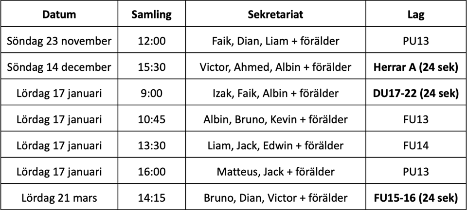 | 5. | (4) | Eskilstuna Guif A-pojk |