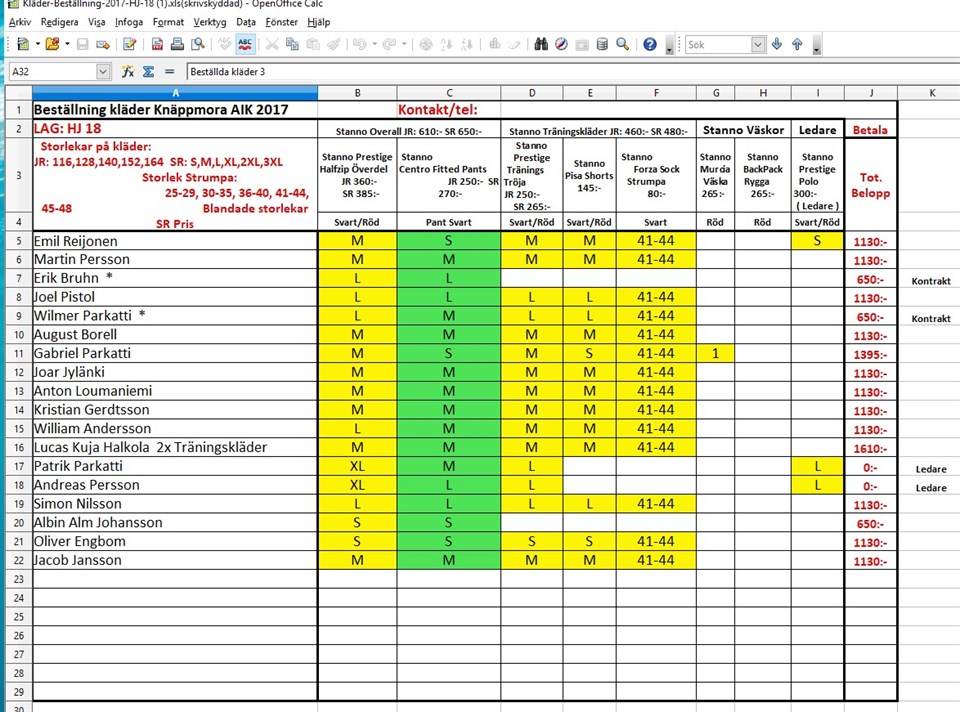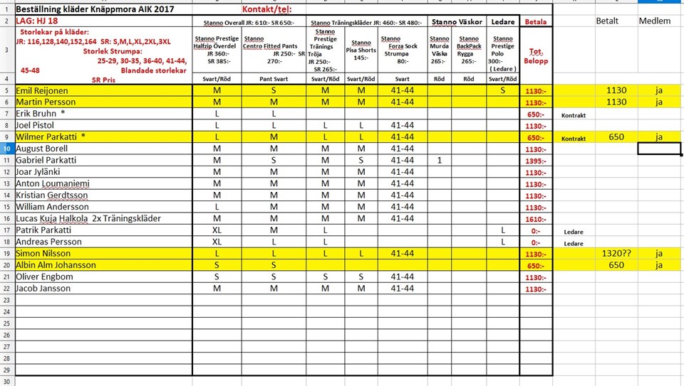 Hej Nu har jag fått listan av Micke E. Den här listan är från kassören i Klubben. Dvs har man några frågor ang. detta så får man kontakta kassören.