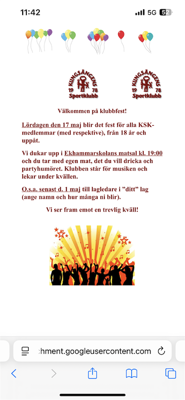 Klicka på bekräftelselänken i det mejl vi skickat dig för att börja ta emot uppdateringar från Kungsängens SK P-13/14 (U12).