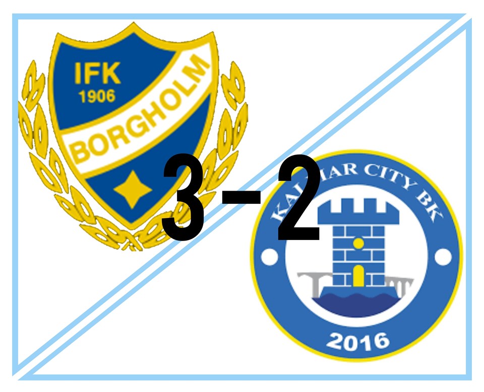 IFK Borgholm - Kalmar City BK 3-2 (0-1) Division 4 SÖ Målskyttar: 0-1, (16) - Lukas Quist (Karwan Delashob) 1-1, (50) - Jonathan Hildebrand 2-1, (55) - Jacob Petersson 3-1, (58) - Jonathan Hildebrand 3-2, (75) - Karwan Delashob (Yunus Hilowle) Gult kort: Melker Löfgren Matchens lirare: Karwan Delashob Kommentar ifrån matchledare Hoshiar Eliassi: " - Vi inleder matchen bra och skapar direkt målchanser! Vi får straff efter dryga 10 minuter, men tyvärr missar vi den! Vi tar ledningen ett par minuter efter straffmissen och har 1-0 i halvtid, vilket var i underkant! I andra halvleks inledning slarvar vi och släpper in tre snabba mål! Därefter är det vår match och vi skapar mycket målchanser, men lyckas bara göra ett mål till, vilket innbär förlust! Vi skapar tillräckligt mycket för att vinna matchen, men vi missar på tok mycket målchanser, samtidigt som vi släpper in för enkla mål! "