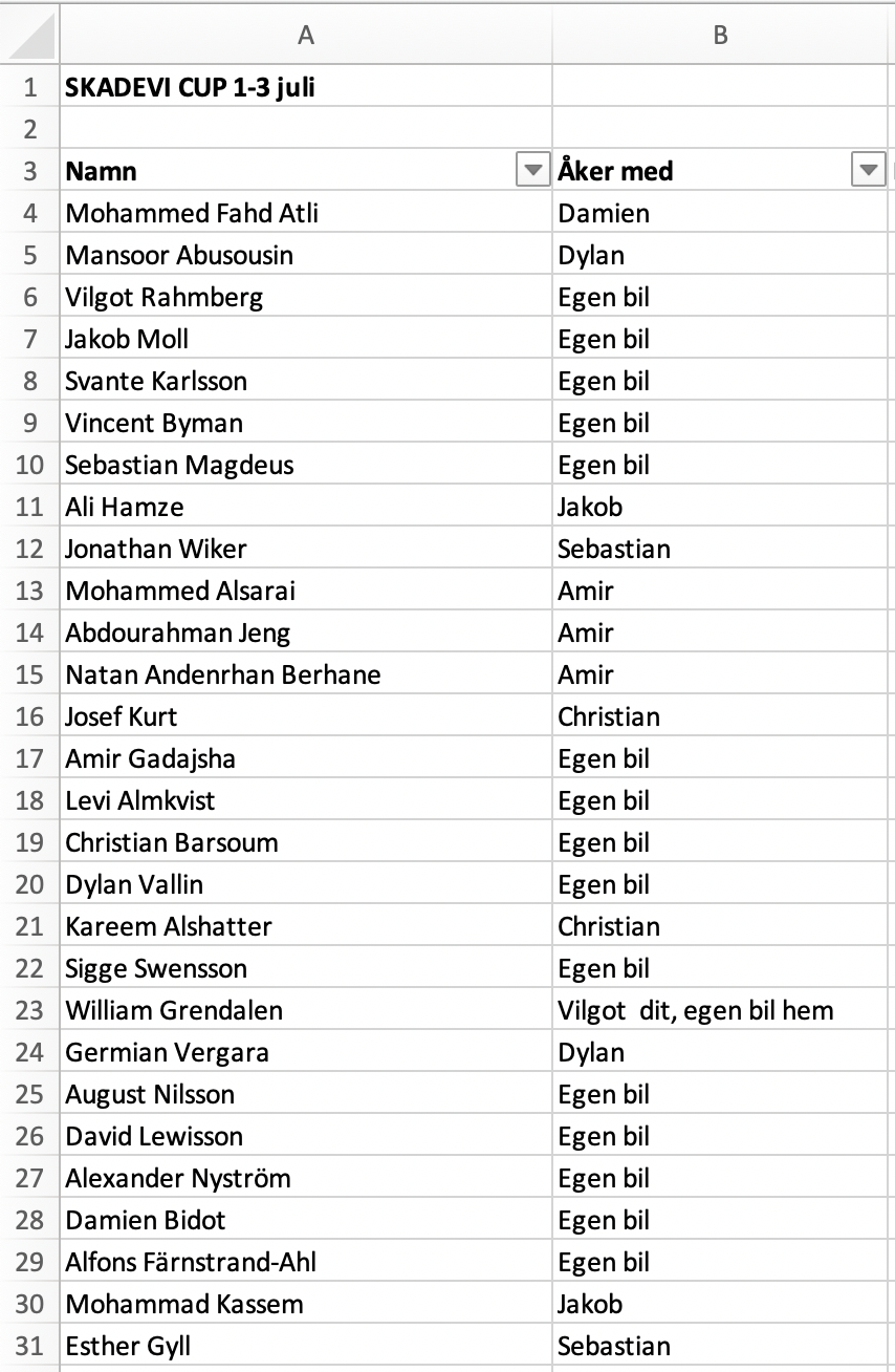 Klicka på bekräftelselänken i det mejl vi skickat dig för att börja ta emot uppdateringar från Karlslunds IF FK P15.