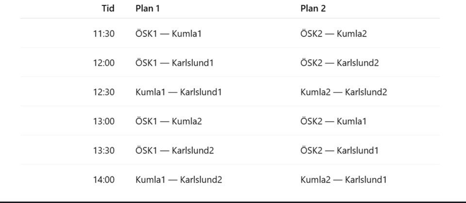 | 7. | (4) | BIK Karlskoga Ungdom A-pojk |