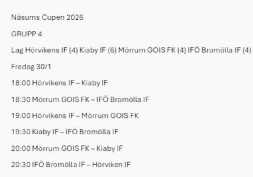 | A/B-lag Herrar Näsums IF (5) (borta) | 27 feb, 19:00 |