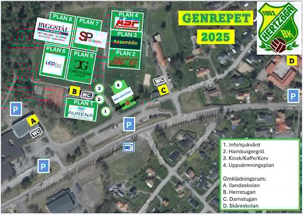 Efter ombyte och genomgång går vi gemensamt till planerna, ta med ryggsäck för alla kläder ska tas med från omklädningsrummet.
