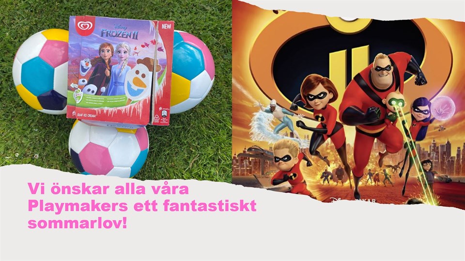 Tack alla Playmakers för en fantastisk avslutning igår! Våren har varit fantastisk där ni alla har varit superduktiga när vi tog oss igenom vårt första äventyr med Frost 2. Ni har visat på så mycket fantastiska färdigheter och vi är så glada att konceptet har gjort det intressant för er med fotboll. Ska bli så kul att få fortsätta Playmakers resan med er och er fortsatta utveckling. Vid uppstart i augusti efter Kimstad GoIF Cup kommer vi gå in i nästa tema som är Superhjältarna 2. Så ett tips vi skickar med er är att, kommer det en regnig dag under lovet, så får ni titta på filmen så vi har koll på äventyret inför hösten. Hoppas att ni alla får ett fantastiskt sommarlov! Vi ses i augusti! Mvh Matilda, Malin, Moa, Ida, Felicia och Saga
