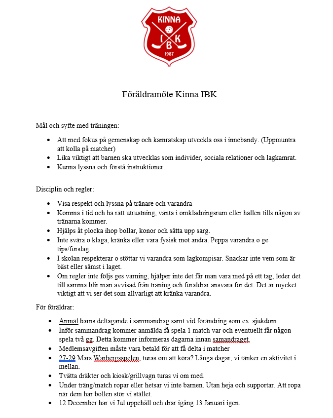 Provar lägga upp det vi tog upp på mötet igår. Inför Lördag kommer i annat inlägg. Ha det fint! :)