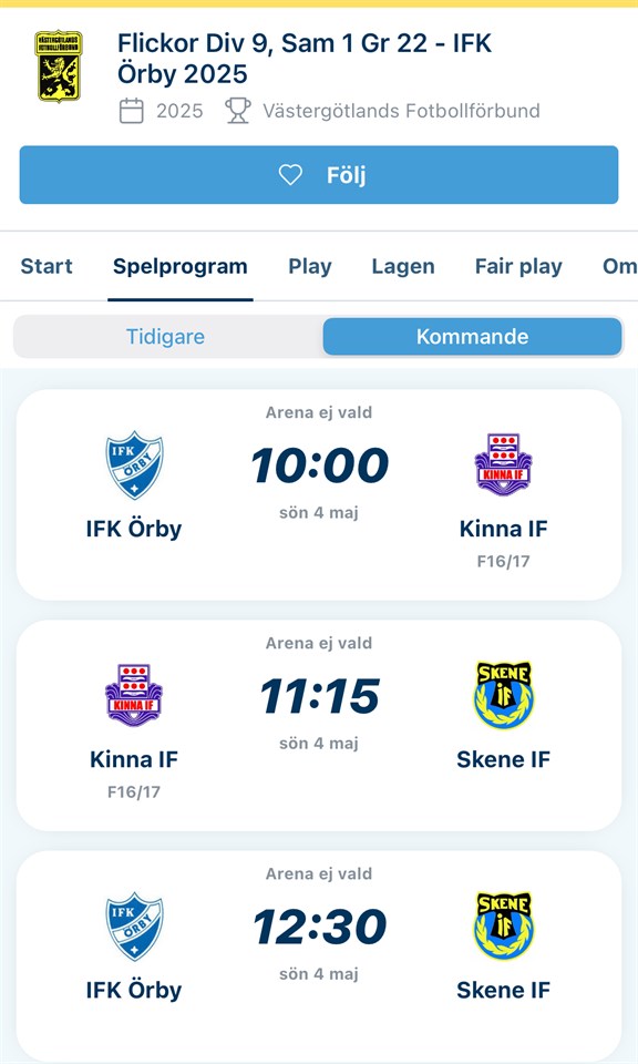 Hej, på söndag drar sammandragen igång. Det är tjejer födda 2016 som inleder vårens sammandrag. Vi samlas 09:15 på söndag på Örby IP. Tjejerna får kläder på plats. Ta med vattenflaska. Se spelschemat på minfotboll-appen. Klicka på länken för att komma till minfotboll, vår lagsida och därefter klicka på matcher. https://minfotboll.app.link/GUIMFAJG2Sb Ses pigga och glada. /Ledarna. F-16/17 (2016/2017) 2 maj 0kommentarer