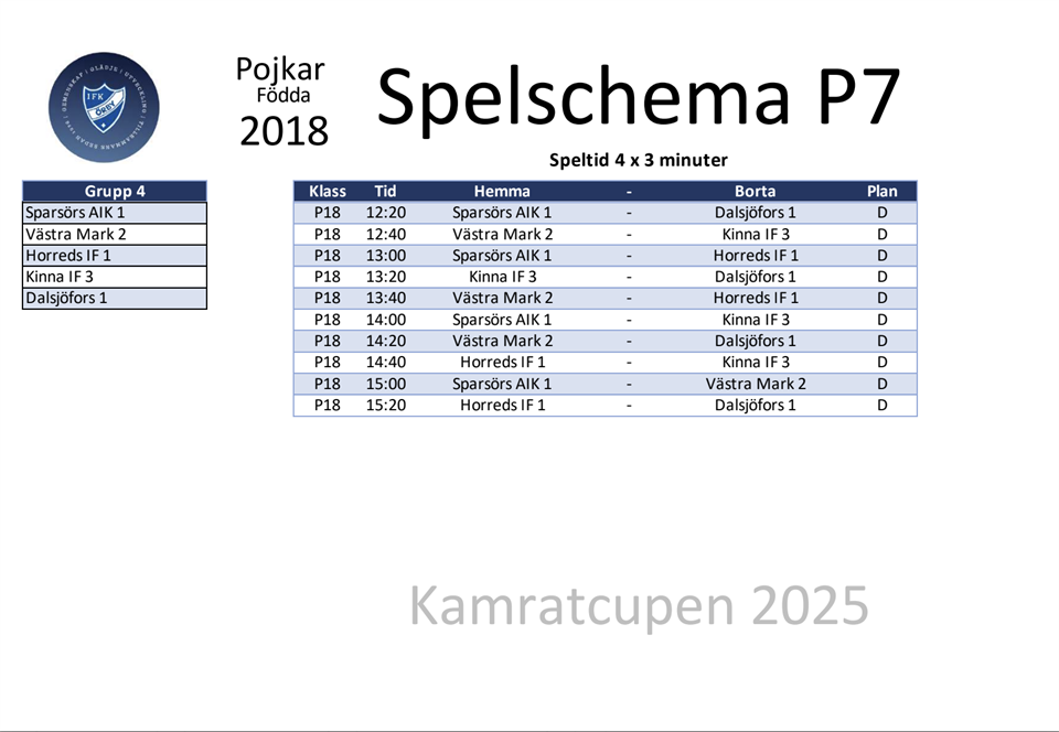 Här kommer info inför fredagens cup. Vi har 3 lag och alla lag spelar 4 matcher var.