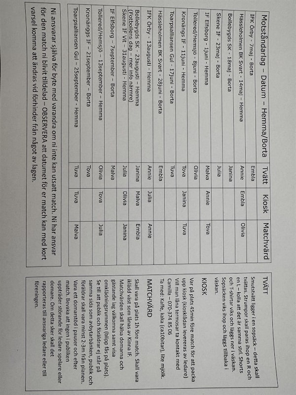 RapporteraFinns det nån som kan byta matchvärd 1 juni med mig?