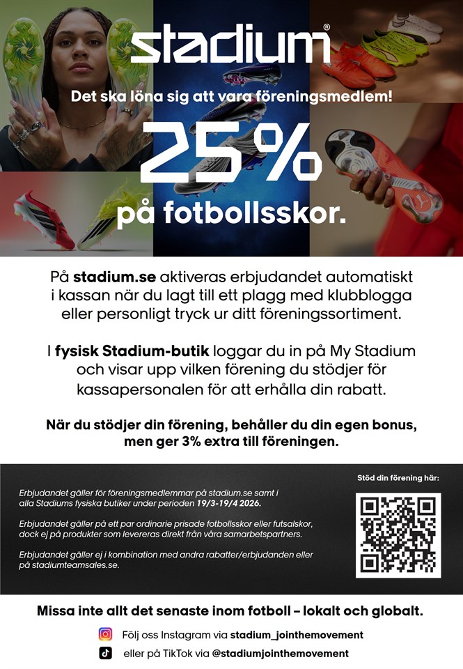 | 18 mar | 25% på fotbollsskor! |