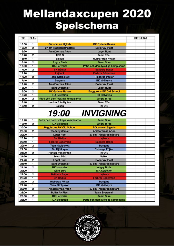 5 dagar kvar! Snart startar Mellandaxcupen 2020 och idag släpper vi spelschemat! Vilka tror du kommer ta hem titeln som vinnare av Mellandaxcupen? Ladda hem spelschemat för Mellandaxcupen 2020 här!