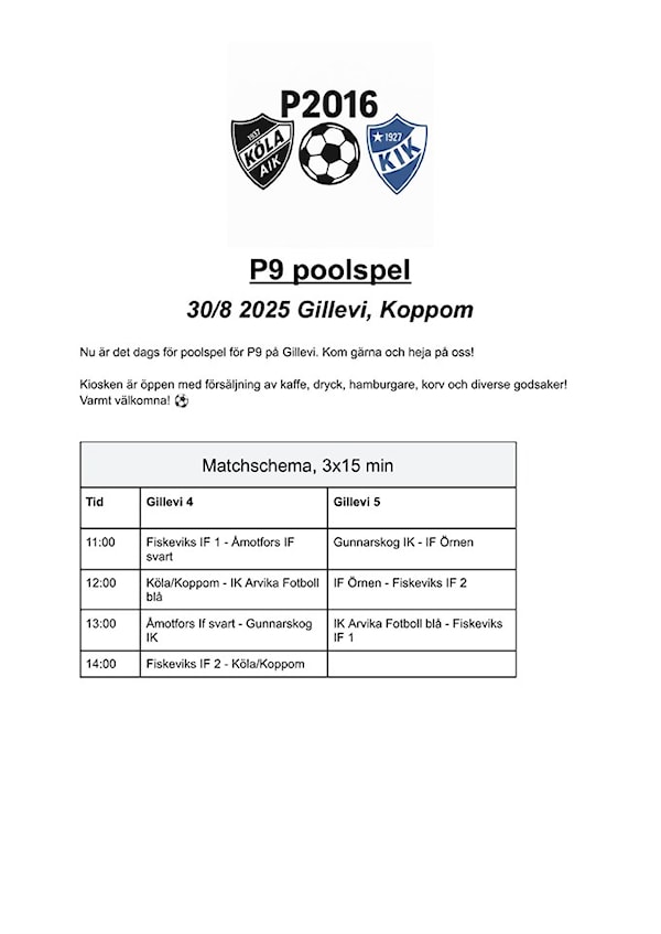 P9 Poolspel på Gillevi den 30/8, kom gärna och heja på oss! ⚽⭐