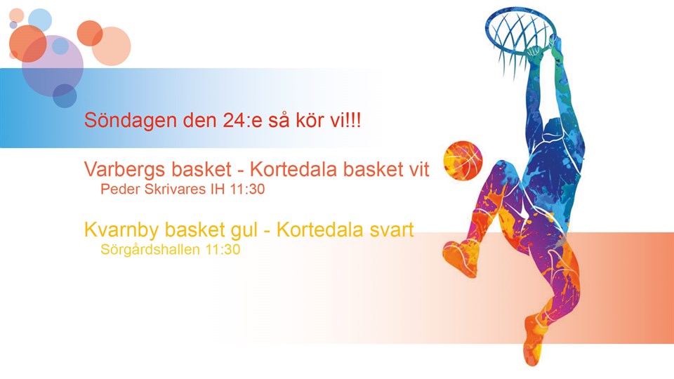 Hej basketnördar! Nu kör vi igång ett par fullspäckade dagar med basket. Idag lördag har vi bortamatch med svarta laget mot Lidbas kl.13:00. Killarna som skall försvara våra färger idag är Leon, Theo, Challe, Evan, Hjalle, Vigan och Noah. (Snyggt jobbat killar, 58-75!!!) Sedan kommer vi till morgondagen. Då är det dax för hemmamatch med vita laget mot Lundby kl.11:30. Samling kör vi som vanligt 45 min innan matchstart (dvs kl.10:45). Killarna som kommer kämpa för vita blir: Affe, Arvid, CO, Challe, Dennis, Emmanuel, Fabbe, Filip, Hamza och Viktor. (Tuff match som i 4:e perioden rann ifrån oss. Men bra kamp och inställning från killarna!) Sedan UTGÅR träning på måndag! Då har vi bara svarta laget kvar som skall spela match mot Kvarnby hemma kl.18:45 imorgon måndag, samling 18:00 ombytta och redo! Laget vi ställer på plan blir: Evan, Fabbe, Felix, Hjalle, Leon, Marcus, Melker, Noah, Theo och Vigan Ni som inte spelar kom gärna upp och heja på era kompisar, vi behöver alltid stödet på hemmaplan. Ses i Gärdsåshallen! (Härligt, då avslutade vi med ytterligare en seger, kul!) Bara att ladda på, nu har vi ett par roliga basket dagar framför oss, Lets go!